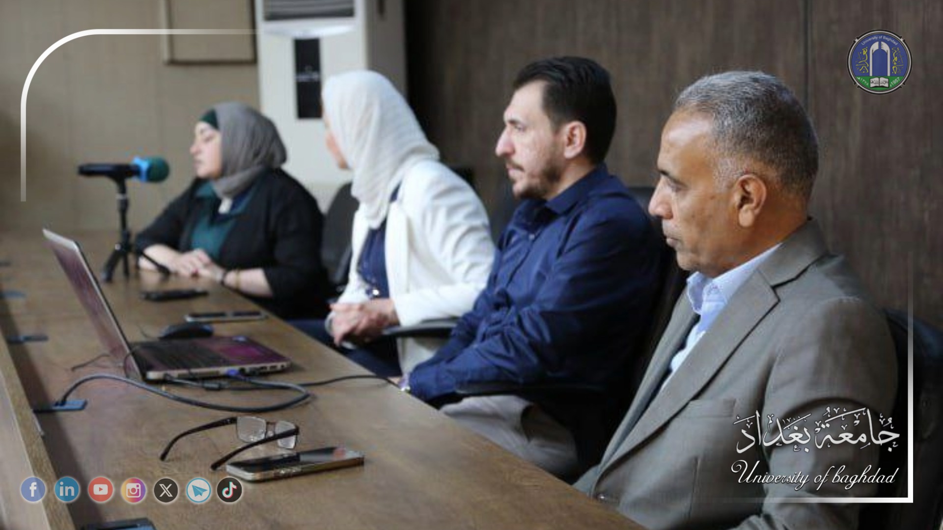 وفي الختام تم فتح باب النقاش مع الحضور للإجابة على استفساراتهم والتعريف بالآلية من أجل إزالة جميع العقبات التي يتعرض لها صاحب الترقية وذلك وفق متطلبات جامعة بغداد و حسب قرارات مجلس الجامعة.