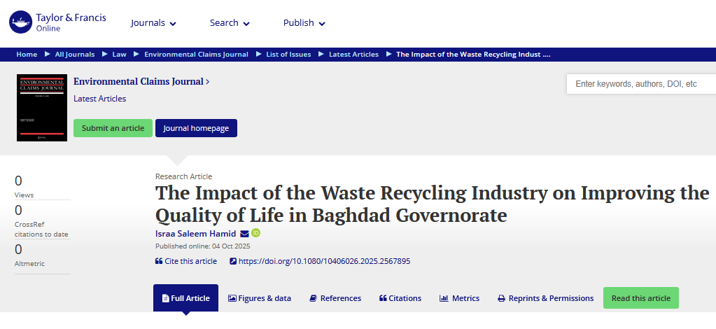 (تأثير صناعة تدوير النفايات على تحسين جودة الحياة في محافظة بغداد)