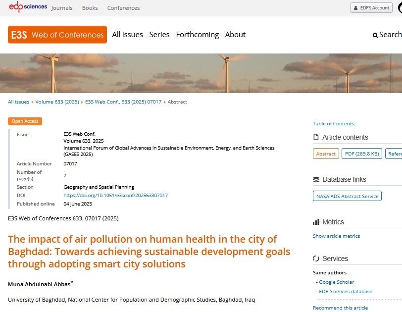 (أثر تلوث الهواء على صحة الإنسان في مدينة بغداد: نحو تحقيق أهداف التنمية المستدامة من خلال تبني حلول المدن الذكية)