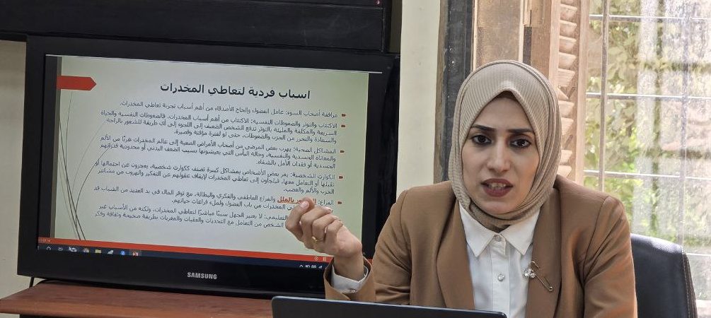 تمت ورشة عمل داخل قاعة المركز الوطني للدراسات السكانية والديموغرافية في ساعة 10 صباحا من يوم الخميس بتأريخ ٢٠٢٥/١٠/12 للمدرس المساعد اخلاص بعنوان ( المخدرات )